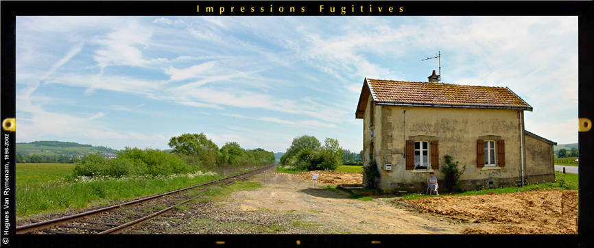 la garde-barrière prenait le frais sur le seuil de sa petite maison. Elle en avait désormais le temps... Il ne passe plus qu'un ou deux trains par jour! De toutes façons, depuis deux ans, on a installé des signaux automatiques. (...à suivre) |
