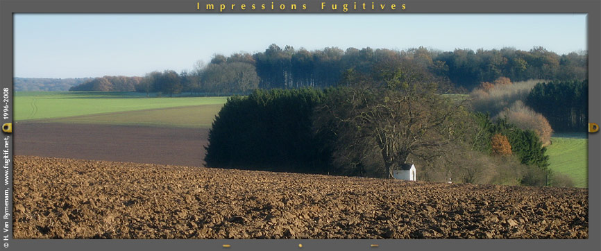 C'est sur les hauteurs de Thon et de Goyet, tout près du bois de la Mâle plume. J'y passe assez souvent... C'est encore un des rares paysage aux lignes pures, la seule construction humaine qu'on y voit est la chapelle entourée de ses 2 tilleuls. Si, tous ensemble, nous ne nous mobilisons pas, les carriers vont irrémédiablement éventrer et saccager ce paysage si doux... Renseignements sur le site www.nonamaleplume.be/. |
