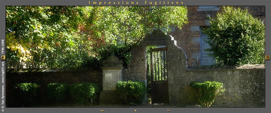 Solide et rassurante comme les arbres qui l'entourent. Ensuite, le regard s'égare dans le parc. Il a envie de s'y poser un moment... Mais, il va plus loin, titillé par la porte entrouverte de l'ancien presbytère... |