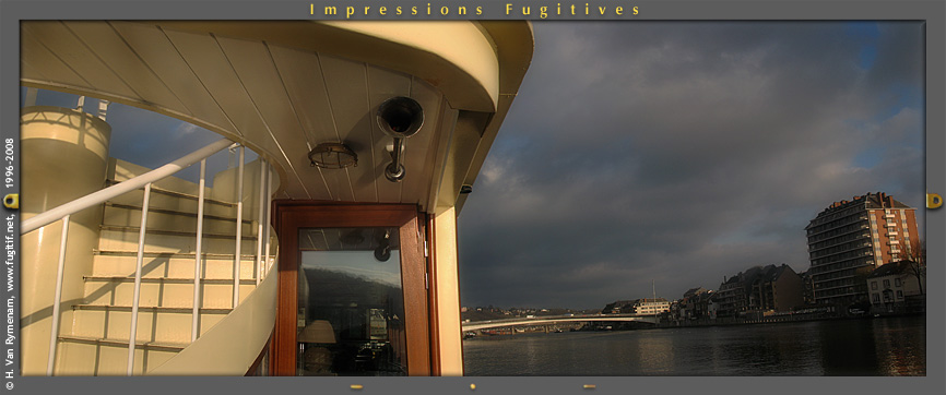 Le blizzard s'apprêtait à déferler depuis l'altiplano de Courrière... Mais pour le moment, un soleil ocre inondait encore le pont supérieur. On pouvait imaginer que la corne de brume allait sonner le départ de la croisière... |