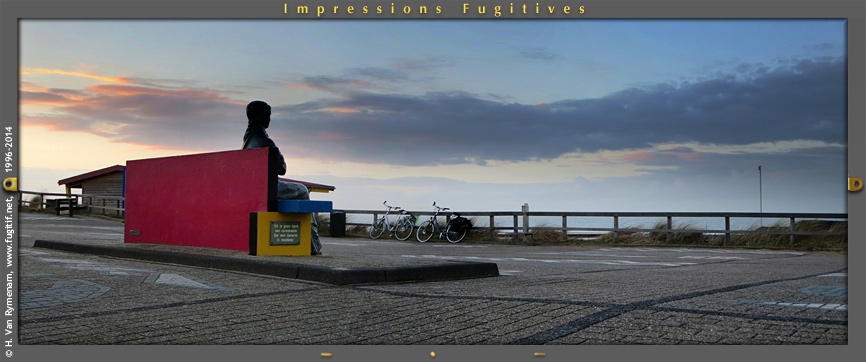 Une nuit dans les îles (1/6) - Un soir à la Mondriaan. Piet Mondriaan venait s’asseoir près d'ici. Il regardait le jour se perdre dans la lande… On a retrouvé les couleurs de Mondriaan dans le ciel, dans les dunes, dans la mer… (à suivre…)