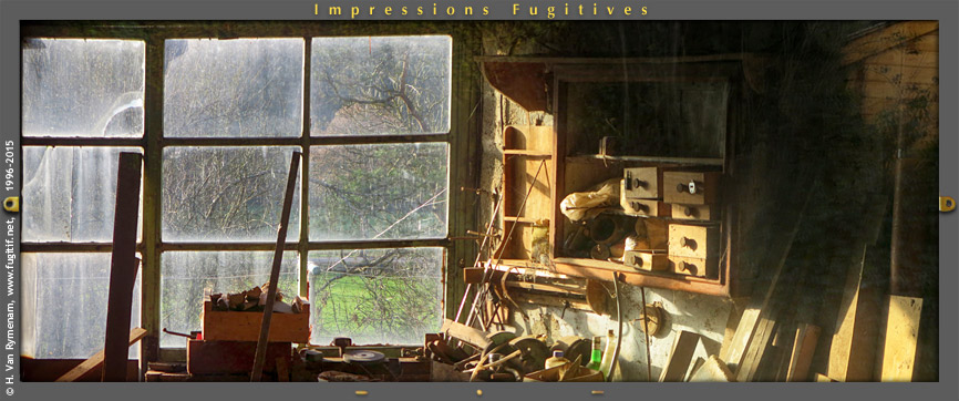 et venait ensuite s’insinuer dans le vieil atelier Il y avait là un joyeux bric-à-brac de bois et d’outils. Un endroit où rester des heures en bricolant, le regard perdu dans la douce vallée de l’Aisne… |