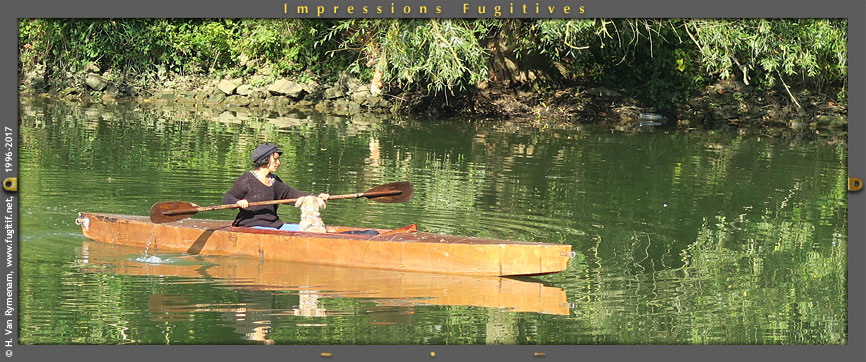 Reflets. Un coup de pagaie dérangeait parfois l’ordonnancement des reflets verts Le chien observait sa maîtresse avec admiration. Un vieux canoë glissait sur une Meuse languide…