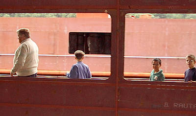 Mais, j'entends les cris des enfants. Les voilà. L'institutrice me raconte que c'est leur troisième visite au chantier. Une bonne partie de l'année, ils ont basé leurs cours sur le bateau, s'en servant pour les exercices de calcul ou de dessin.