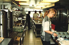 Comme disait tantôt, Vincent le soudeur, en contemplant la somptueuse salle de restaurant du bateau: - "Et dire qu'il y en a des centaines de soudures à moi, en-dessous de tout ça..." |